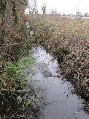 The ditch which will flow eventually back into Cholsey Brook, the plank I think may be part of the old bridge that was here.